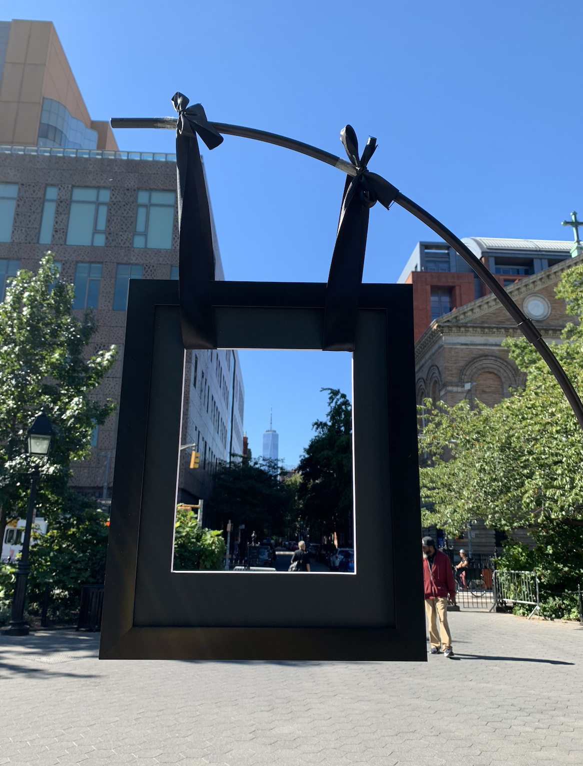 QR code-opens google map/info of the landscape that is seen through the frame (really useful for people who are not familier with New York landscapes).