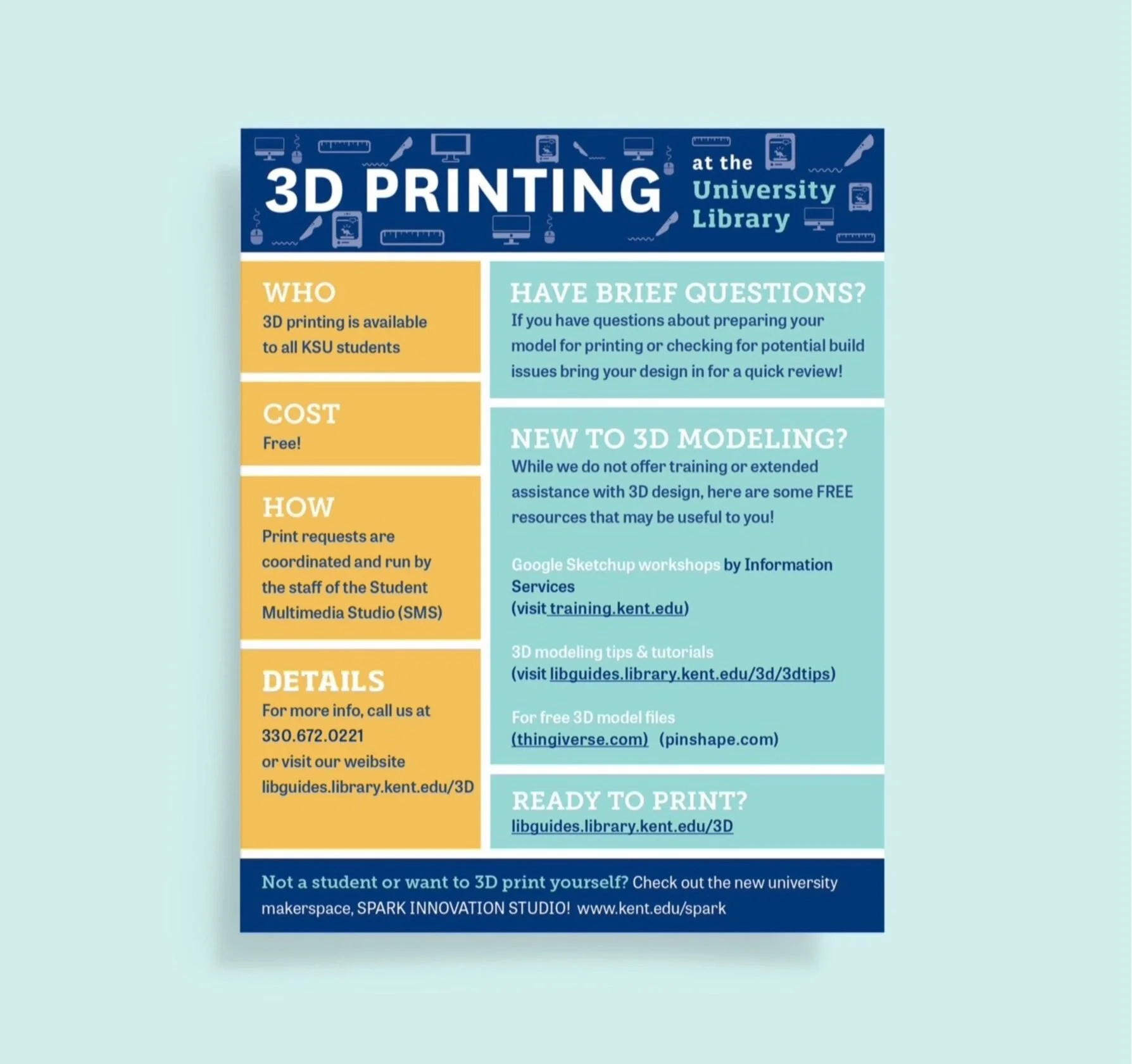 During my short internship period, I had the opportunity to refresh Kent State University’s Makersapce identities and create marketing materials for them.